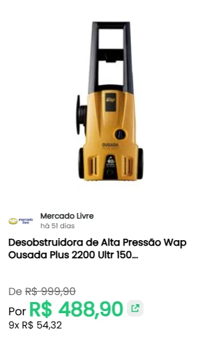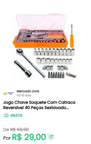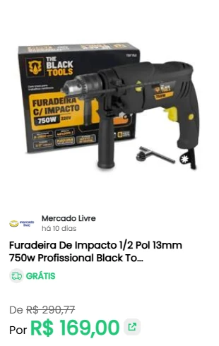 • Agilidade do Mercado Livre: para quem precisa de rapidez, monitoramos as ofertas com entrega Full do Mercado Livre, garantindo que as suas ferramentas cheguem rapidamente quando você mais precisa;
